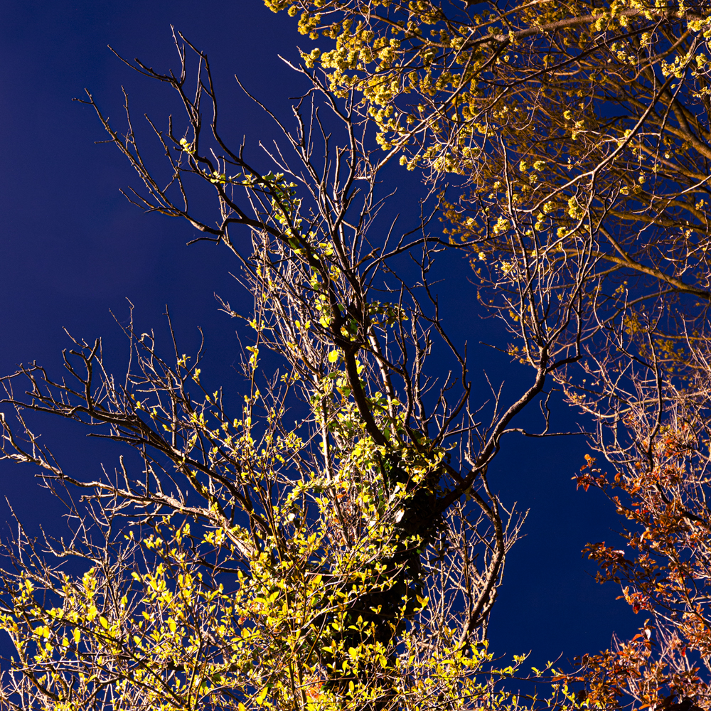 Night Colours is een visuele verkenning vanuit mijn eigen tuin in avondlicht. De verschillende kleuren straatverlichting met de hemelgloed van de omliggende tuinbouwbedrijven in combinatie met maanlicht of het zgn. blauwe uur geven mijn leefomgeving soms een magische glans. Het is mooi, vervreemdend en ook heel onnatuurlijk. Het wordt nooit meer echt donker ’s nachts en dat heeft een verstorende werking op mensen, dieren en planten.