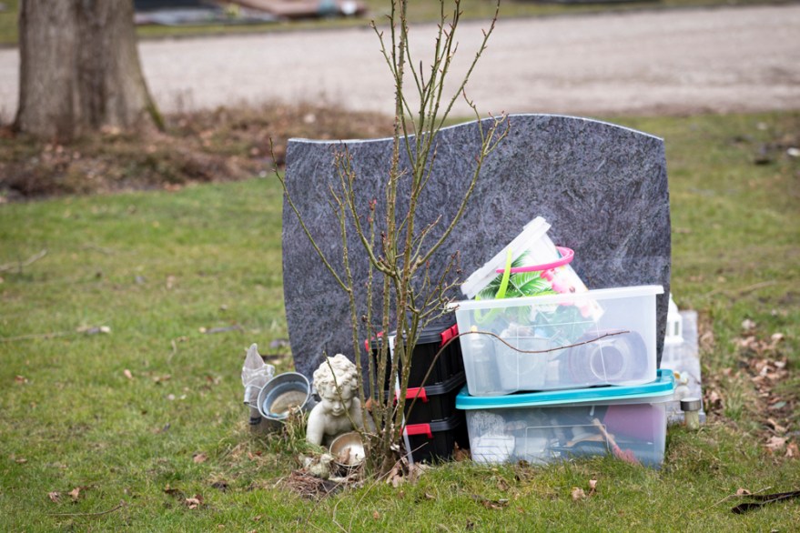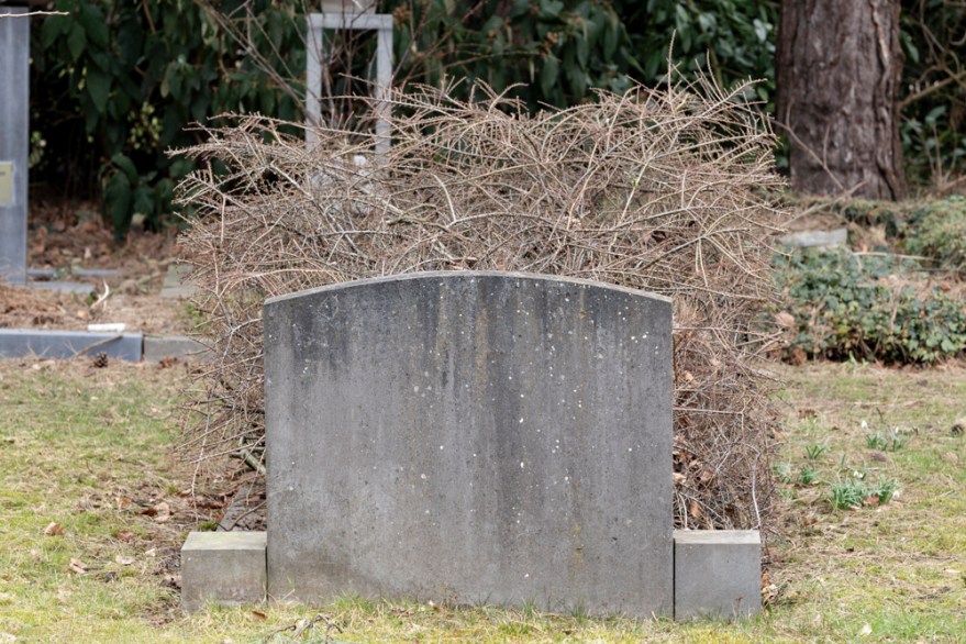 Wat bewaard men achter de grafstenen? Hoeveel stillevens met gieters en afwasborstels kom je er tegen en beeldjes met gebroken of geheel ontbrekende ledematen? De titel is ontleend aan een hek op een begraafplaats waar de Latijnse uitdrukking ‘Memento Mori’ (gedenk te sterven) wat rommelig was afgekort.