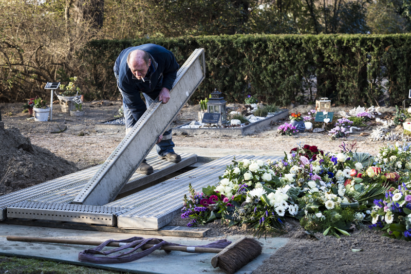Tijdens een ijskoud weekend aan het einde van februari maak ik kennis met Jaap. Hij werkt ruim dertig jaar op de gemeentelijke begraafplaatsen. Als er tijdens een uitvaart in het weekend geen medewerkers aanwezig zijn loopt Jaap de familie voor naar het door hem gedolven graf. Dit is Jaaps laatste weekend in dienst van de gemeente.